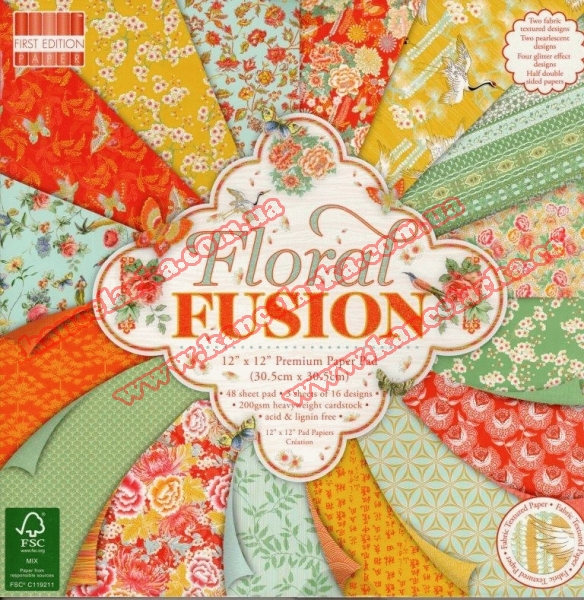 Набір паперу для скрапбукінгу Floral Fusion, 30x30см, 48арк., First Edition, FEPAD155 FEPAD155