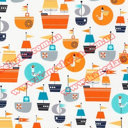 Тканина Robert Kaufman OCEAN by Suzy Ultman Кораблики і пташки 100*110 см. ASD-15418-59