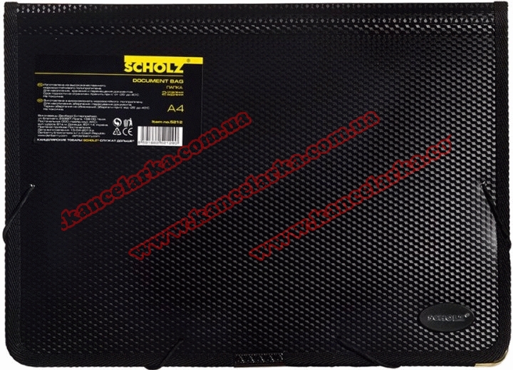 Папка на гумках 2відд., А4, PP, чорна, 5212, Scholz 5212