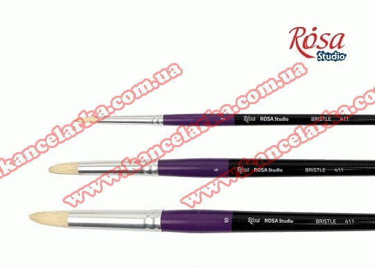Щетина кругла, 411, пензель ROSA Studio в асортименті