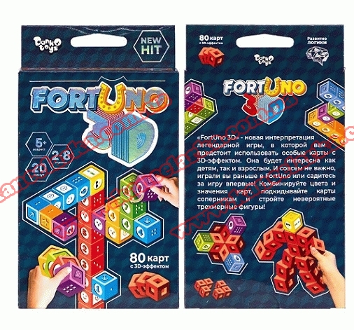 Гра карткова розвиваюча 'ФортУно 3D' дитяча, укр., G-F3D-01-01U, Danko toys G-F3D-01-01U