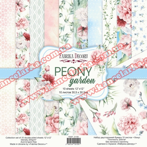Набір двостороннього паперу для скрапбукінгу 30,5*30,5см 'Peony garden', 200г/м2, 10 арк., FDSP-01109 FDSP-01109