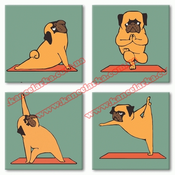 Набір акриловий живопис за номерами 'поліптих'-Yoga-dog 4шт. 18*18см, KNP012 KNP012