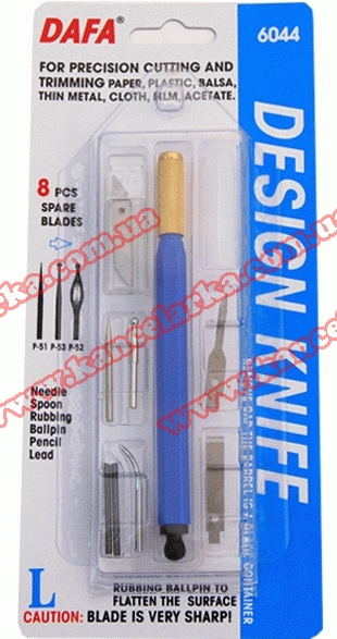 Ніж макетний, пластикова ручка, 8 змінних лез, 7 насадок, С-6044 DAFA С-6044