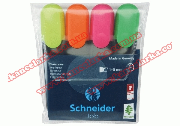 Набір маркерів текстовиділювачів SCHNEIDER JOB 1-4,5 мм, 4 кольори в блістері, S1500 S1500