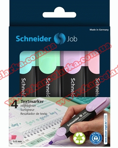 Набір маркерів текстовиділювачів SCHNEIDER JOB 1-4,5 мм, 4 пастельні кольори в блістері, S115098 S115098
