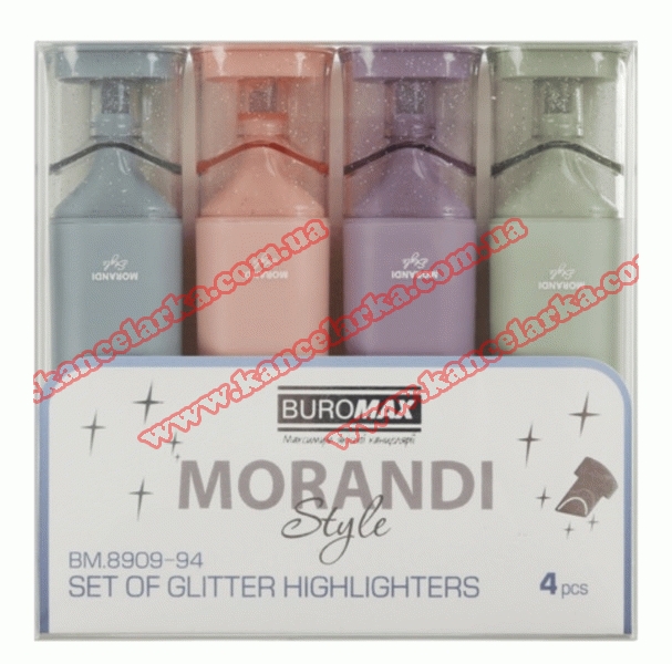 Набір із 4-х текст-маркерів MORANDI STYLE Glitter, (рож., бузк., олив., граф), 2-4.5 мм., BM.8909-94 BM.8909-94