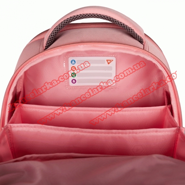 - внутрішній органайзер для шкільного приладдя; - кишеня для телефону; - відділ для гаджетів, ущільнений зсередини; - ключниця-пружинка для зручності використання ключів та їх надійного збереження; - картка-вкладиш для внесення персональних даних першокласника; - позначки на кишенях для внутрішньої навігації; - брендована міцна підкладка.