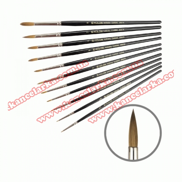 Пензель круглий з волоса російського колонка. Стандартна виставка робочої частини. Цей пензель відрізняється винятковою пружністю і еластичністю, при задовільній м'якості він застосовується у всіх видах живопису і абсолютно незамінний в роботі гуашшю і аквареллю тоді, коли від пензля вимагається велика пружність. Призначається для нанесення фарби лінією з незмінною товщиною, або лінією, що варіюється по товщині. Цей пензель незамінний для малюнка, створення фактури, роботи над деталями. Пензель представлений на короткій ручці.