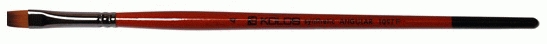Пензель плоский з волосу синтетики. Стандартна виставка робочої частини. Рижа синтетика імітація колонка, відрізняється винятковою еластичністю і пружністю волосяного пучка. Таким пензлем наносять широкі рівні мазки, ним добре працювати на великих ділянках полотна. Завдяки густоті і довжині волосу пензель утримує багато фарби. Пензель представлений на короткій ручці.