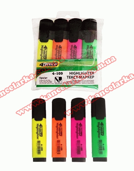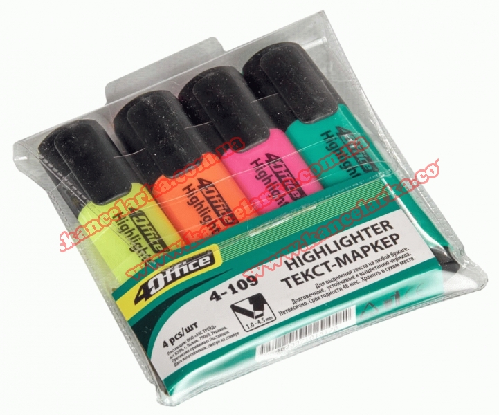 Набір текстових маркерів 4шт., 1-5мм тов. лінії, 4-109/4, 4Office 4-109/4