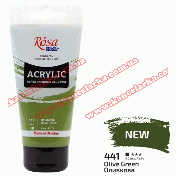 Фарба акрилова Acrylic, Оливкова, 441, 75мл, Rosa Studio 441 441