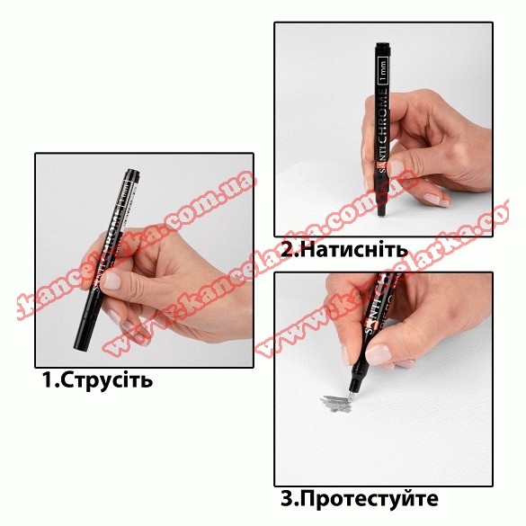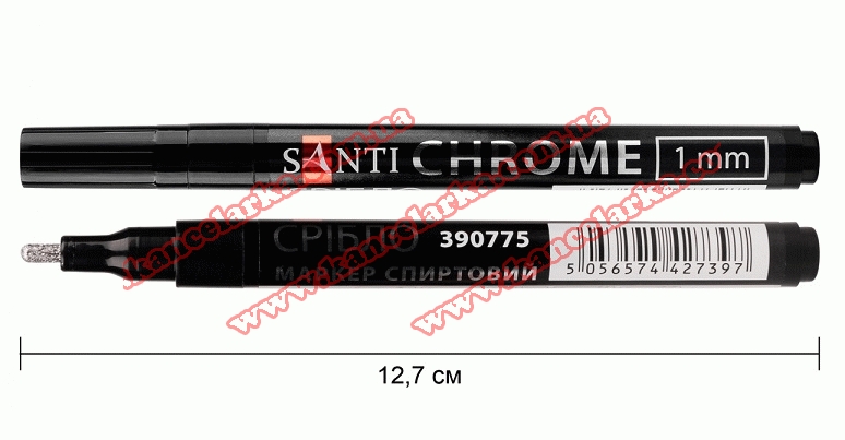Маркери SANTI "Chrome" завдяки спеціальним високопігментованим чорнилам на спиртовий основі створюють справжній дзеркальний ефект. Підходять для усіх гладких не поглинаючих поверхонь. Маркер перманентний, водостійкий, стійкий до УФ-випромінювання . Може використовуватись у сфері моделювання, графіті, дизайні, DIY тощо.