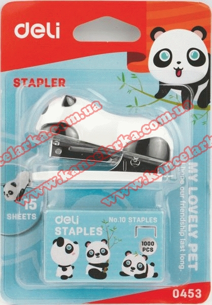 Степлер Deli 0453Е 'Панда' №10 12 аркушів міні пластиковий + скоби 0453Е