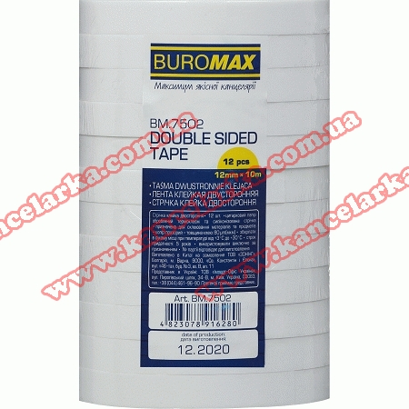 Клейка двостороння стрічка від BUROMAX використовується для склеювання паперів різного розміру, тонкого картону, плівки та інших матеріалів. Стрічка відмінно замінює клей і широко застосовується при запечатуванні конвертів, виготовленні сувенірних товарів, для упаковки коробок, подарунків, квіткових композицій, комп'ютерної вишивки, шиття, при наклеюванні фотографій, постерів, плакатів і т.д.